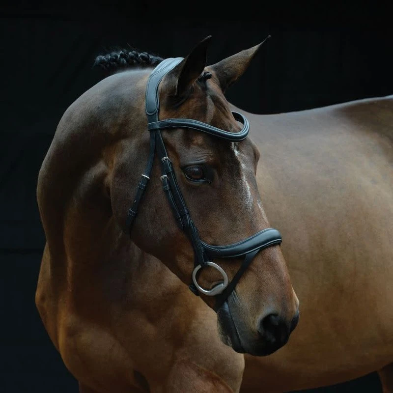 This bridle is made from high quality European leather and features an anatomical headpiece with super soft padding throughout and is wider shaped between the horses ears to distribute pressure evenly and comfortably. The curved nose piece is shaped to bypasses all the sensitive main facial nerves and offers ultimate comfort and protection.